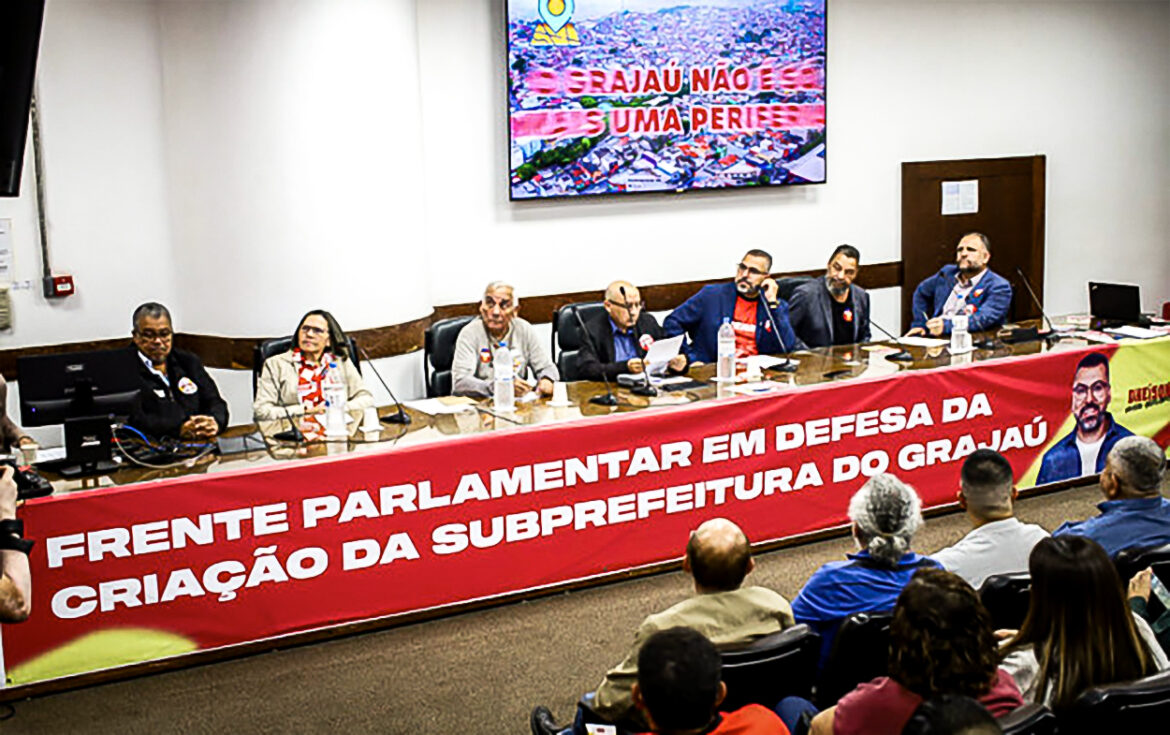 A Câmara Municipal de São Paulo realizou, na noite de sexta-feira (13/3), o lançamento da Frente Parlamentar em Defesa da Criação da Subprefeitura do Grajaú. A iniciativa foi instituída pela Resolução nº 27/2025, proposta pelo vereador Dheison Silva (PT), com apoio dos parlamentares Silvia da Bancada Feminista (PSOL) e Silvão Leite (União Brasil).