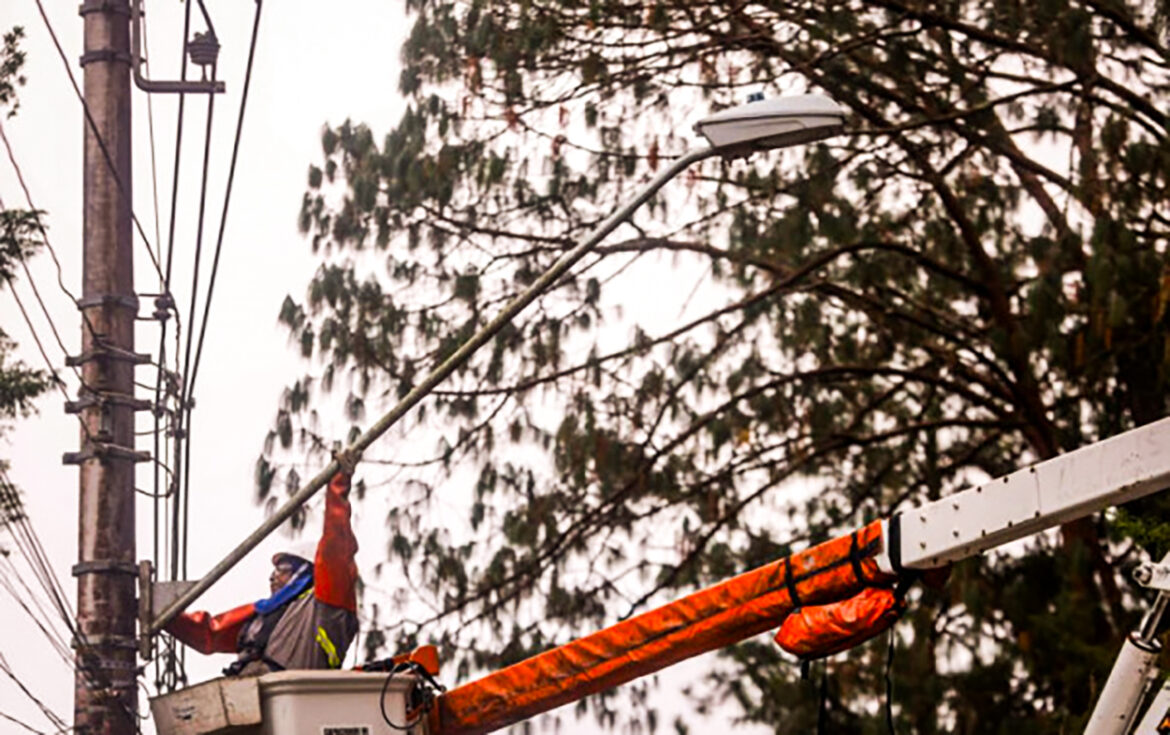 Instalação das novas luminárias de LED | Foto: Warley Kenji/PMG
