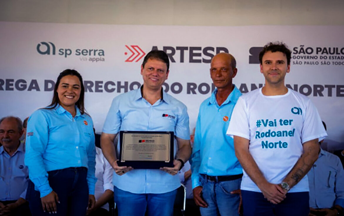 O governador de São Paulo, Tarcísio de Freitas, participou nesta segunda-feira (22) da inauguração do primeiro trecho do Rodoanel Norte, em Arujá, Região Metropolitana do Estado. A obra, que teve a entrega adiantada em seis meses em relação ao cronograma inicial, será liberada ao tráfego na terça-feira (23) e compreende 24 quilômetros, do km 129 ao km 153, conectando as rodovias Fernão Dias e Presidente Dutra, com acesso ao trecho Leste do próprio Rodoanel, na altura da Rodovia Ayrton Senna.