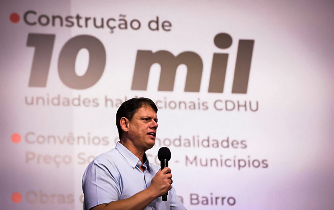 O governador Tarcísio de Freitas anunciou nesta quarta um plano para erguer 23 mil moradias em áreas próximas a estações ferroviárias na Grande São Paulo e na região de Campinas | Foto: Pablo Jacob/Governo do Estado de São Paulo