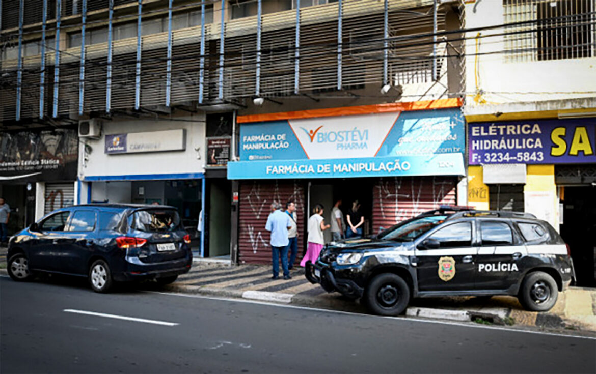 A estrutura utilizava a licença da farmácia vizinha para abastecer a operação irregular, configurando uso fraudulento de documentação sanitária.